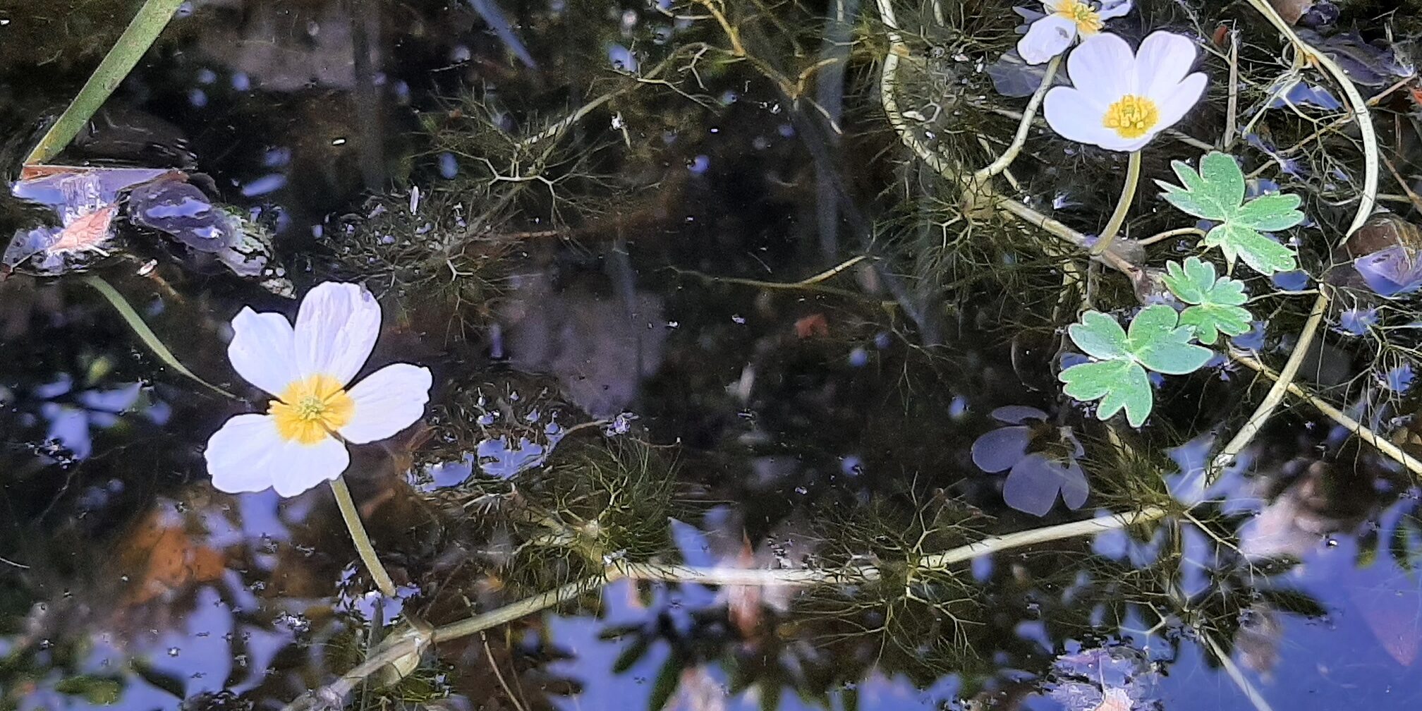 Das Wasser war klar und es fand eine Besiedlung mit verschiedenen Röhricht- und Wasserpflanzen statt, darunter auch der nicht ganz so häufige Gewöhnliche Wasserhahnenfuß (Ranunculus aquatilis, Vorwarnliste der Roten Liste der Farn- und Blütenpflanzen SH).