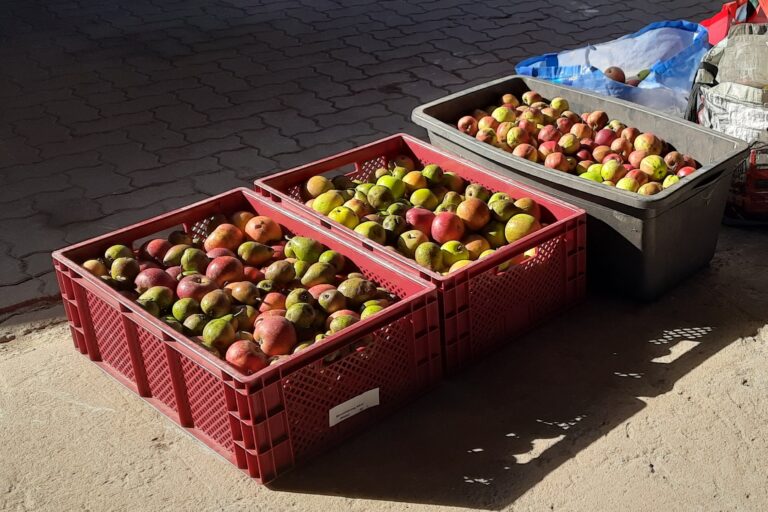 Eigener Saft aus eigenem Obst: So hatten wir geworben… und am vergangenen Sonntag eine mobile Obstpresse nach Hemmingstedt geholt. Das Interesse war auch in diesem Jahr groß.