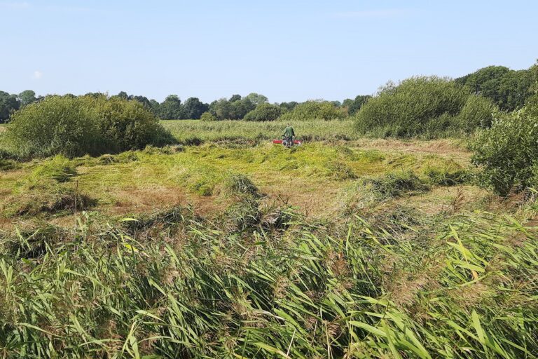In der Windberger Niederung wurden vergangene Woche insgesamt ca. 2,5 ha Grünlandflächen mit dem Brielmaier der Fa. walk gemäht und das Mahdgut geschwadet. Derzeit verladen Mitarbeitern der Stiftung Mensch dieses Material und transportieren es ab.