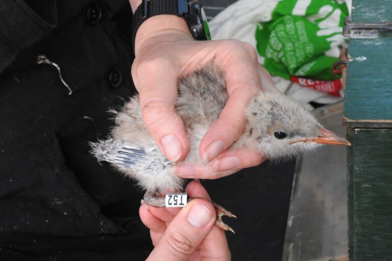 Am 27. Mai ist das erste Lachseeschwalbenküken dieser Saison im Neufelderkoog geschlüpft. Es kommt aus dem Nest mit der Nummer 17, ist vital und wird gut gefüttert. Für die Betreuenden bedeutet dies, dass die letzten Handgriffe am Krötenzaun durchgeführt und die letzte Folie gespannt werden muss.